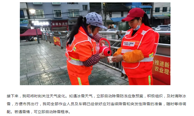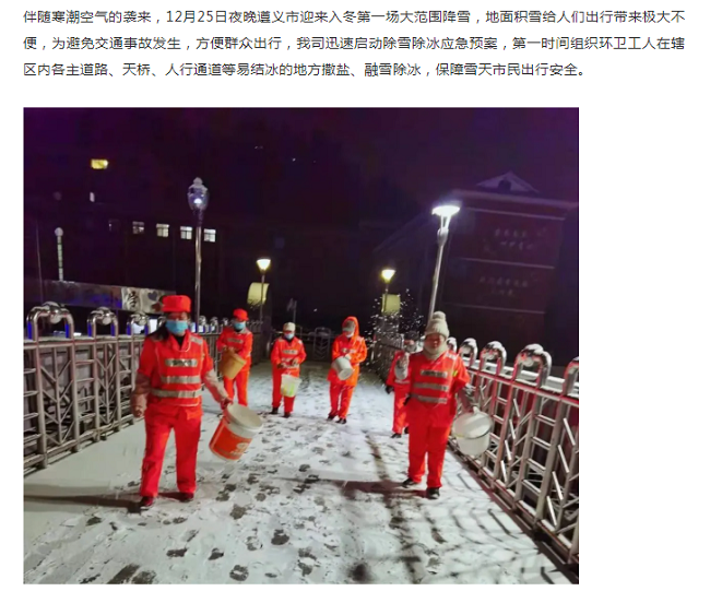 工作动态 | 环卫工人撒盐融雪保畅通——丝瓜视频入口在线播放遵义分公司