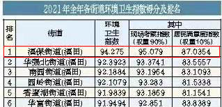 2021年全年各街道环境卫生指数排名第一;