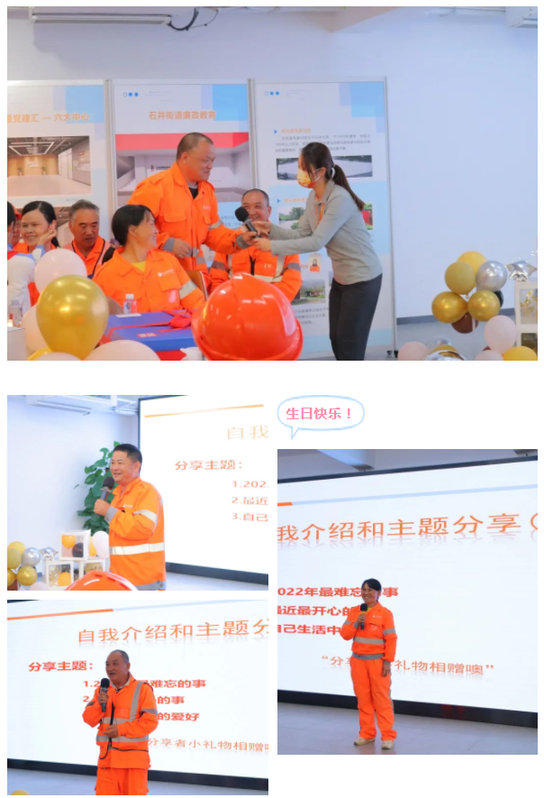 生日会开始,石井街道市政部吴主任为寿星们送上诚挚地祝福,感谢他们为美丽石井做出的贡献。随后项目为参加活动的员工举办了联谊分享会并为优秀员工进行颁奖,大家畅谈着感动难忘的瞬间,诉说着自己的生日愿望,共同分享着生日蛋糕。在悠扬欢乐的生日歌中,四处洋溢着幸福的笑脸,将生日会现场点缀得更加温暖....