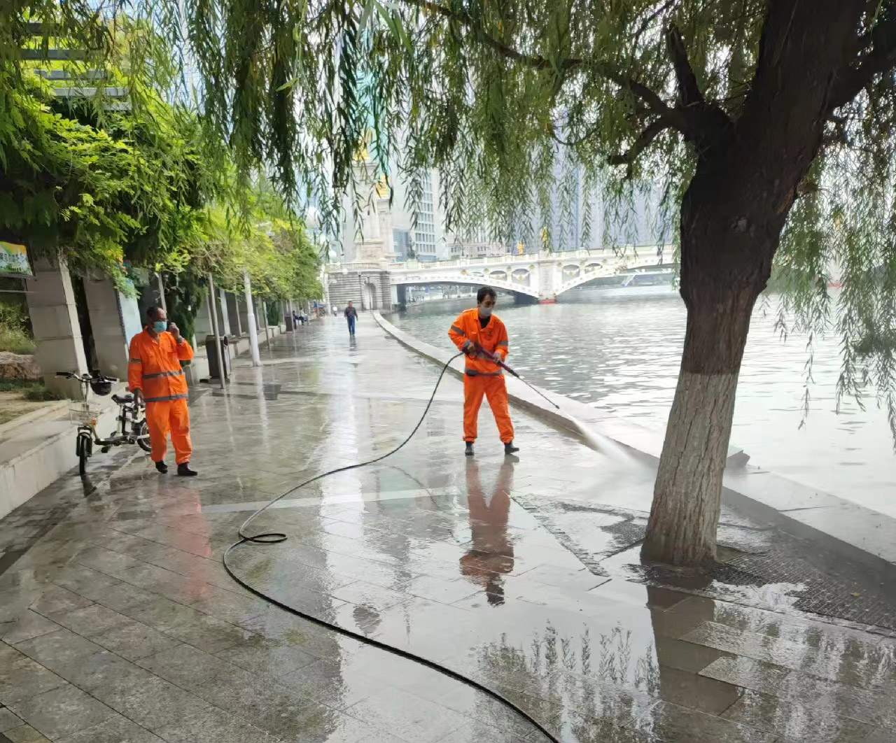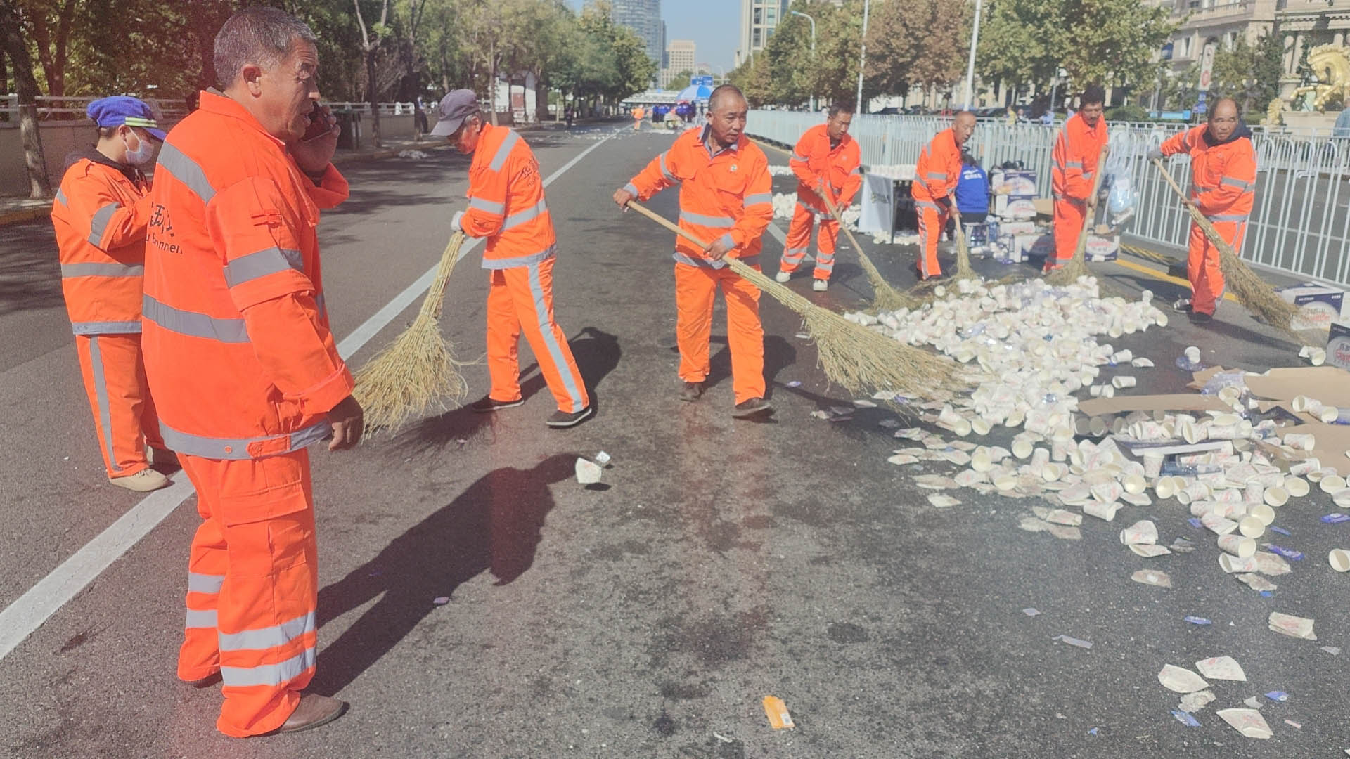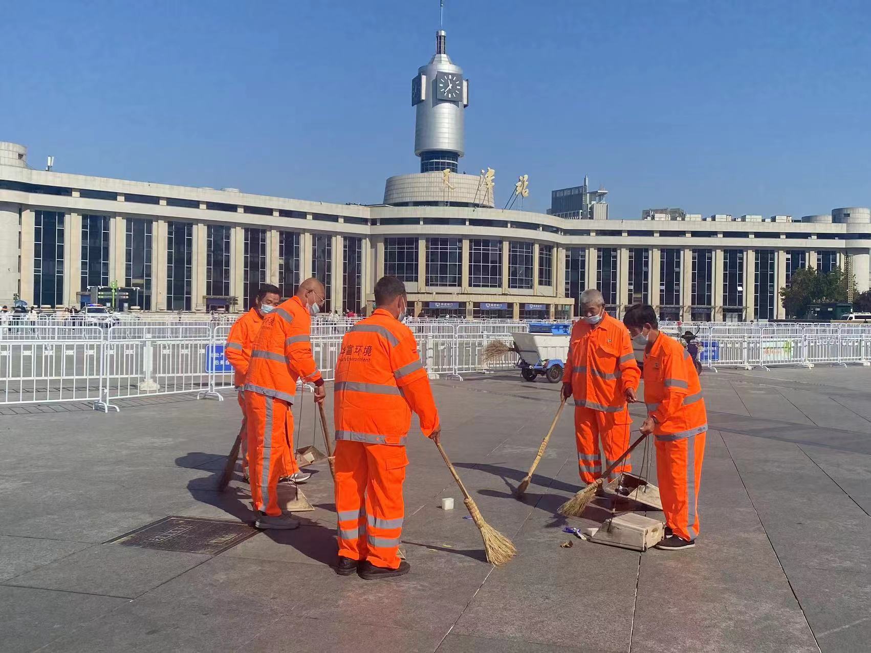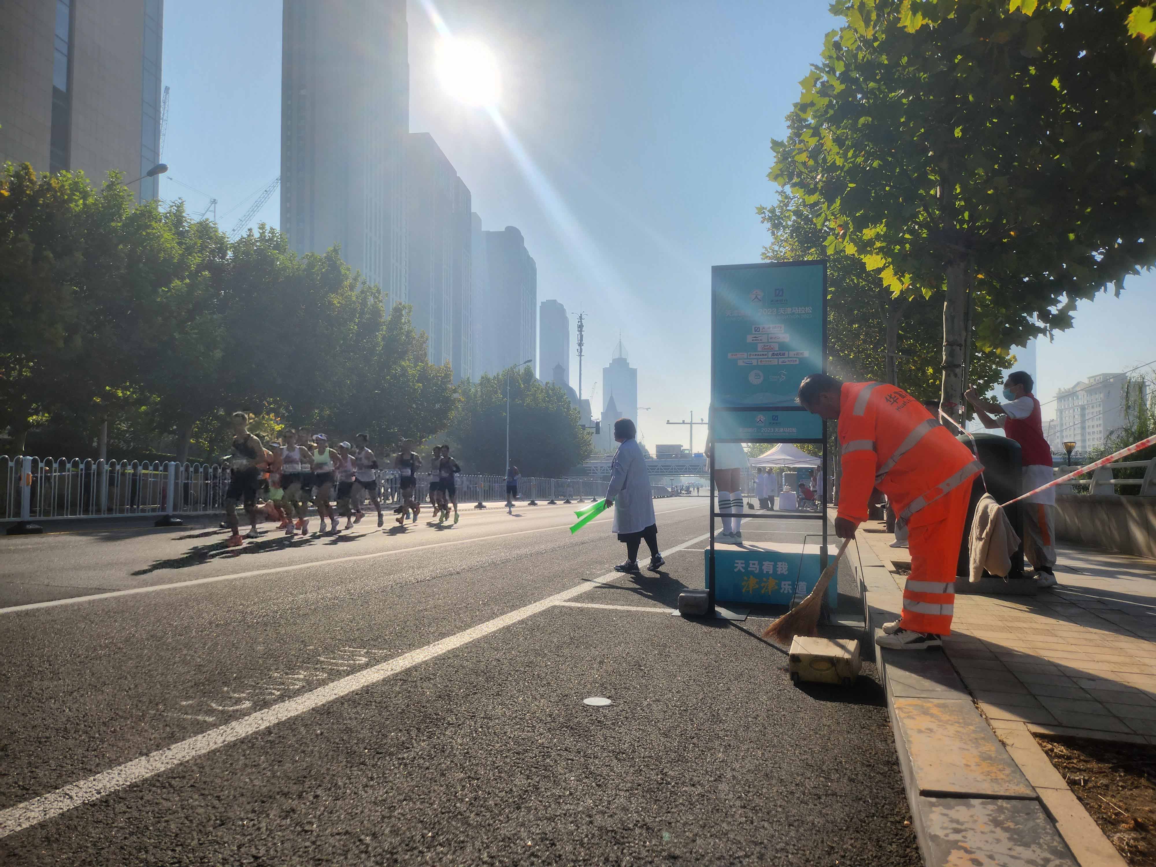 此外,由天津河东项目组建保洁突击队支援海河东路沿线至天津站广场世纪钟全程约11公里赛区进行赛前重点区域深度保洁,环卫工作人员凌晨三点到岗就位进行“全方位”晨扫,全力保障马拉松活动的如期顺利进行。