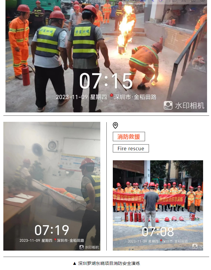 2023年11月9日是第32个全国消防日,为进一步增强环卫工作人员消防安全意识,提高全员防灾避险能力,我司开展以“预防为主,生命至上”为主题的消防安全演练活动及急救培训。