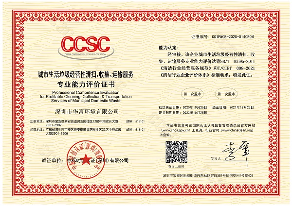 • 城市生活垃圾经营性清扫、收集、运输服务证书