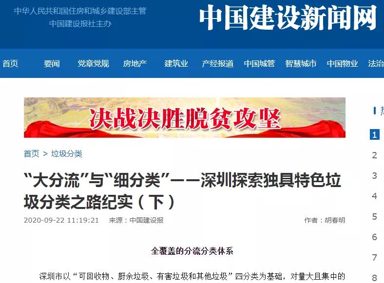 本文转发自中国建设报《深圳探索独具特色垃圾分类之路纪实》,全文分为两部分,上篇:“强制分类”与“定点督导”;下篇:“大分流”与“细分类”。
