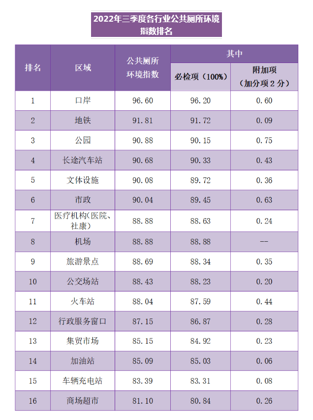12类场所中,测评得分率最高的是环卫作业车,三季度以97.28分大幅领先其他各类场所,大鹏“鹏白白”环卫车交出满分卷,干净整洁、外观亮眼的环卫作业车成为“靓丽的风景线”。深圳大力推动环卫行业从劳动力密集型向装备技术密集型转型升级,在环卫作业服务招投标范本中明确机扫车、清运车等设备配置要求,并对全市4000余辆环卫作业车进行统一设计喷绘、联网监管,树立良好行业形象。同时,在全国率先推广使用新能源环卫作业车,新能源环卫车占比超85%,今年起大力推广使用LNG(液化天然气)垃圾转运车,2月份福田区试点投用首台LNG垃圾转运车,目前全市已累计推广160辆,计划至2024年实现全市垃圾转运车全部清洁化替代,完成后每年可减少碳排放约4600吨,为“双碳”工作贡献城管力量。