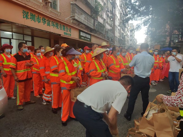 观湖街道领导慰问一线环卫工人,发放端午节物资